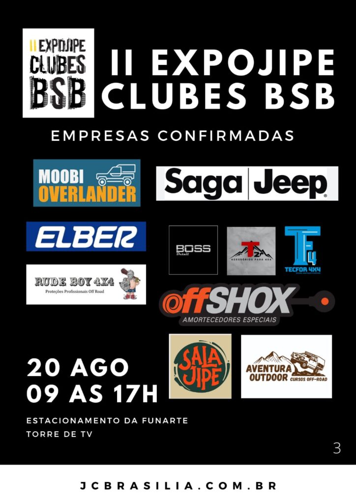 Na edição 2022, Os clubes de Jipes parceiros estão trazendo algumas novidades como uma Trilha hard na Fazenda Taboquinha, outra nas imediações de Taguatinga e mais uma na Ermida Dom Bosco. Também um Passeio Planilhado, desenhado nos moldes de um Rally, que ainda estão com inscrições abertas a qualquer pessoal. Serão ao todo, 100 Jipes competindo e o ponto de chegada dessas atividades será na ExpoJipe, no Stand da Saga-Jeep, que estará trazendo veículos 4×4 zero Km e lançando novidades.